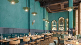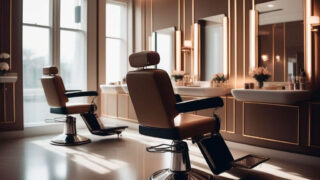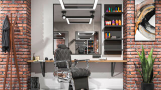 白と黒のコントラストが印象的なサロン。観葉植物を加えることで居心地の良い雰囲気に。
